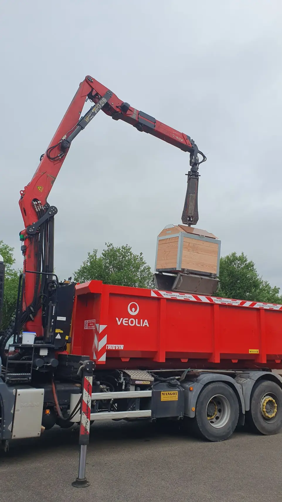 - Ouverture de la trappe par contact de la ridelle sur la benne de collecte.